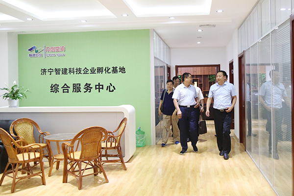在济宁市智建科技企业孵化基地主任韩彦亮的陪同下,各位领导参观了济宁市智建科技企业孵化基地综合服务中心,详细了解了基地的发展情况。济宁智建科技企业孵化基地是集新技术、新产品、新工艺、新材料展示推广服务与创新创业众创空间服务于一体的建设专业类孵化平台,按照“新平台、新模式、新服务”的发展理念,通过政府行政化引导、企业市场化服务和社会资本化运作的方式,构建的低成本、便利化、全要素、开放式的新型大众创业空间,全面建设多元化、多层次、全产业链的建设科技企业孵化平台,带动了济宁及周边地区建筑产业的全面升级。