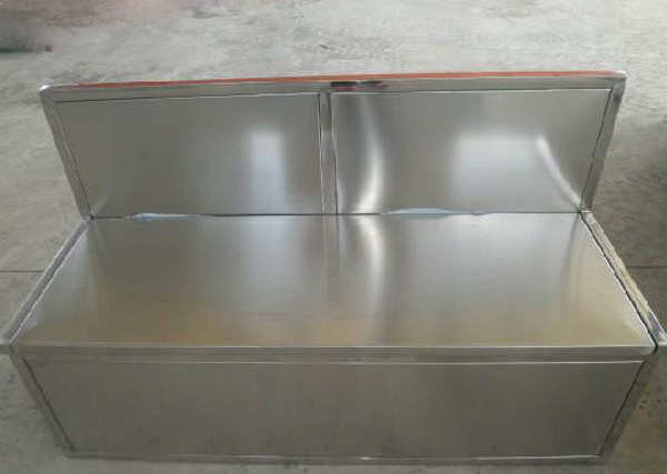 避难硐室座椅标准规格为4座/套,由座板(含靠背)、横梁、脚架和箱体几部分组成,都是由4个位连成排椅结构;标准座椅长2000mm,宽488mm,高887mm。材质全部是由不锈钢制成,非常方便清洁;按需要摆放在硐室内,有较大的重量,不易被随意移动或搬动;座椅连接牢固,能承受较大的载荷,能牢固的把持地面。