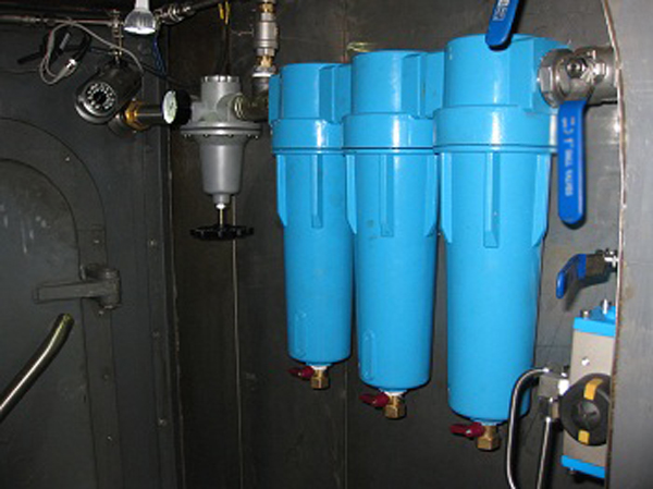 管路设计:气幕设计采用气幕刀设计,气幕刀为纯不锈钢材质,喷射为缝隙0.05mm 的均匀的缝隙向下方喷射气幕,并采用两二端供气。