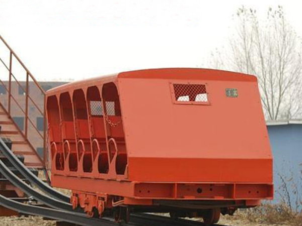 XRC8型插轨式斜井人车适用于倾斜角不大于30度的斜井中,此型号人车用于绞车牵引,在斜井中安全可靠地运送工作人员。此型号人车可以单独头车使用,还可以由头车、挂车、尾车组列运行,多可以组列成4节为一列运行。