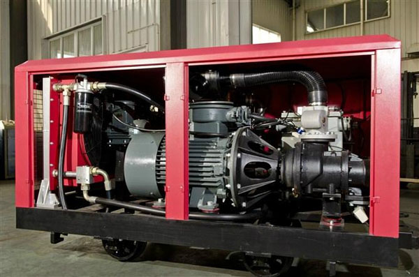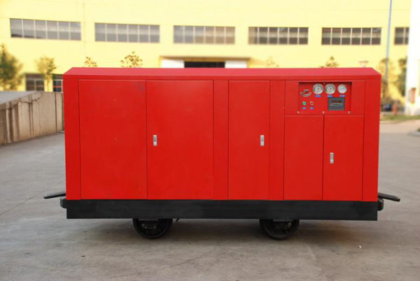 矿用防爆螺杆空压机可以在井下掘进工作面附近安全运转,并可随巷道延伸向前移动,故能保持较高气压,使气动机械的效率比地面供气时提高30%至一倍,耗电下降30%,并能节约大量管道。 本压缩机也适用于工程巷道施工。