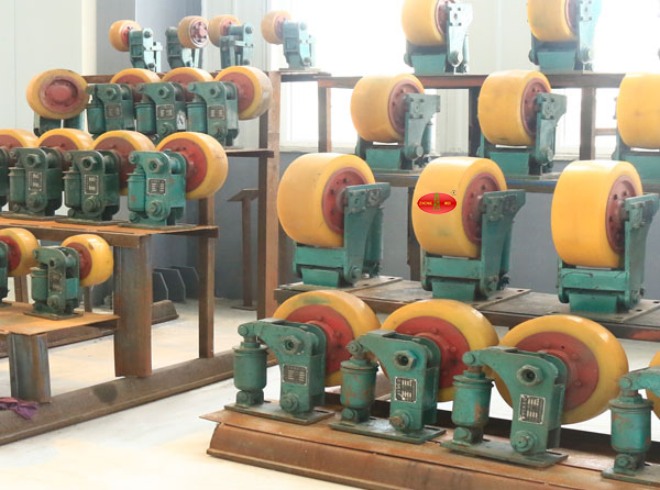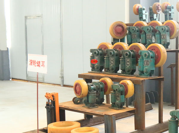 LS35滚轮罐耳安装在提升容器上(箕斗、罐笼、重锤)。滚轮直接与钢罐道接触,承受提升容器在运行中所产生的水平力。通过杠杆传递到减震筒上,同时起到导向、缓冲与稳定作用。罐道与罐耳由滑动摩擦变为滚动摩擦,因此减少了动力消耗,降低了噪音,罐道和罐耳的磨损也大大降低。从而,滚轮罐耳提高了罐道和罐耳的使用寿命。LS35滚轮罐耳主要由轮轴、支架、缓冲装置、底座等组成.