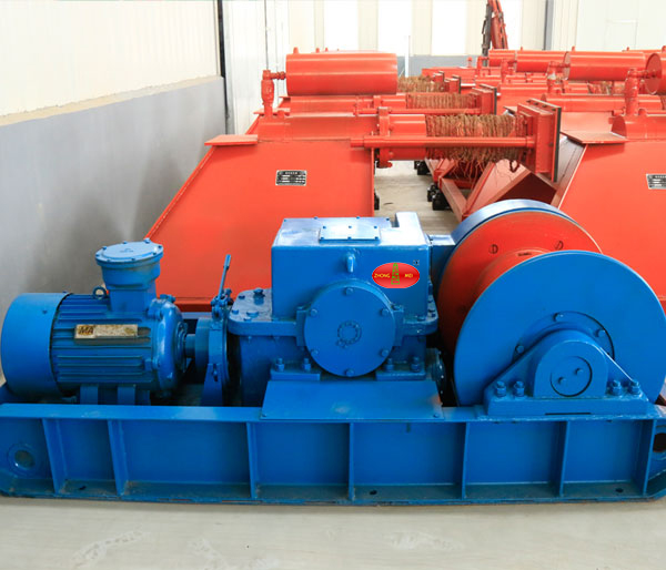 JH-14回柱绞车的型式为单筒缠绕,采用蜗轮减速器和开式齿轮传动。用于井下回柱放顶。综合采煤设备的搬迁及工作面安装的牵引动力,亦可作运料、移溜槽、搬移皮带运输机机头等辅助工作的牵引绞车。型号组成意义 J:绞车 H:回柱 14:钢丝绳平均静张力140KN