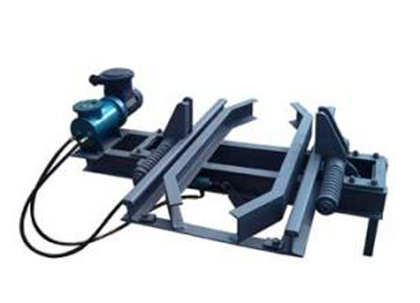 (1)抱轨式电动阻车器可与跑车防护装置组合配套使用,实现与绞车同步控制:当矿车正常下行运行到距离前挡爪设定的位置时,前挡爪打开,后挡爪关闭,矿车通过前挡爪到达设定的位置时,前挡爪关闭,后挡爪打开,矿车通过后挡爪到达设定的位置时,后挡爪关闭,前挡爪打开;矿车上行时挡爪的开关顺序相反;当出现溜车时,挡爪不会打开,矿车将被阻挡住。