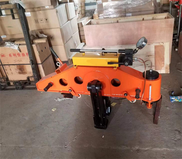 工作原理:往复摆动手扳把,将作用力施加在待调直钢轨轨顶面,通过支架另一侧顶头及中间部位的吊钩,对钢轨进行校直,使柱塞泵工作(吸、压油),将高压油压入工作油缸内,活塞杆伸出,这样根据杠杆平衡原理,便可实现钢轨低接头进行校直的。