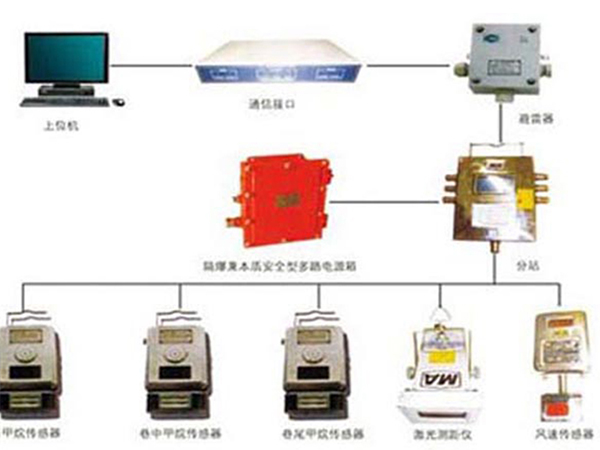 系统可以监测矿井下瓦斯、风速、负压、一氧化碳、温度、风门开关等环境参数,也可以监测并控制井下各种机电设备开停的运行,并将详细的监测数据传送至地面工作主机并随时显示的数据、图形、曲线、报警点 及数值,实现了各局部环节的自动化。