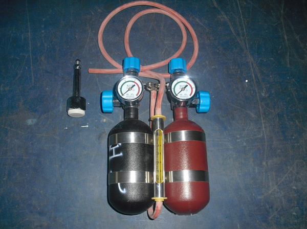 2瓶0.2L气瓶、1个减压阀、1个流量计、0.5米胶管、牛皮包1个。