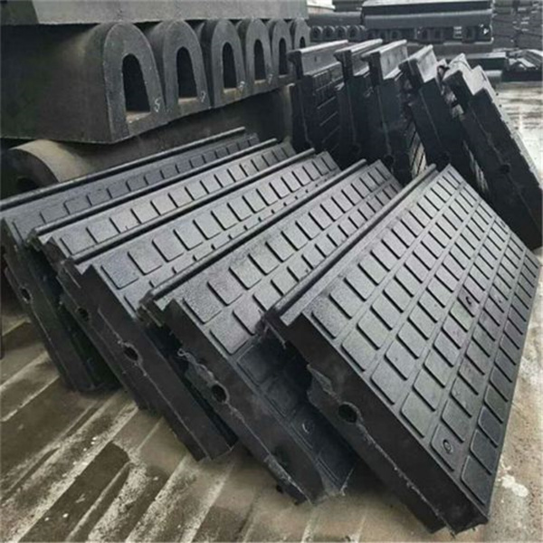 橡胶道口板具有随力强,防震性能,绝缘性能好,耐磨,屡经压缩变形少,强性高,耐老化,不翻泥浆,使用寿命长等特点,经模拟由15万次提高到45万次,使用寿命长达10-15年,符合铁路提速及要求。使用它可提高机动车辆的运输能力,减少道口维修次数,避免因机动车辆熄火而引起的交通事故。无论从经济,社会效益等方面都值得推广应用。(水泥道口板容易损坏,铁道口板操音大。)该产品较原铺面板使用寿命高达3倍以上.