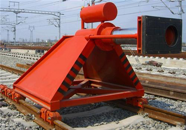 液压挡车器是一种安装在轨道尽头线上的防撞挡车安全防护设备,适用于有轨交通车辆的安全防护。挡车器由主体架、阻尼器、缓冲头和液压缓冲装置四大部分组成。液压挡车器由液压缓冲和滑动摩擦来吸收溜逸车辆的动能。在阻尼器内装有多组弹簧增力装置,既增加了制动力,又缩短了线路占用长度,便于安装和复位。液压挡车器采用压力阀与阻尼小孔相结合的方法,减少了在高速冲击下液压系统压力的峰值,提高了缓冲系能,有利于保护车辆。
