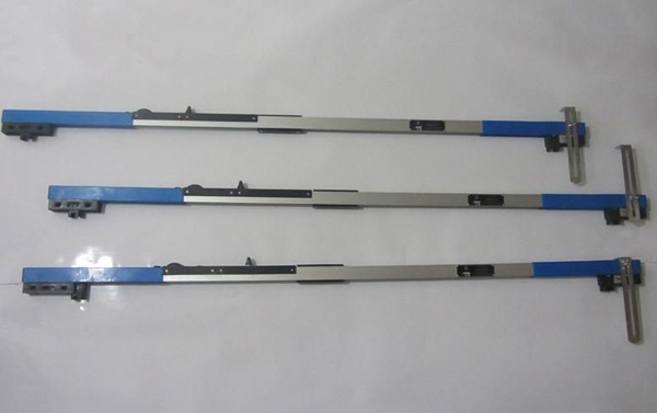 轨距尺是用于测量铁路线路两股钢轨间的轨距,是一款专用计量器具。轨距尺的特征是尺杆由木尺杆和金属尺杆通过折叠机构,把两尺组成一个复合式的杆尺。
