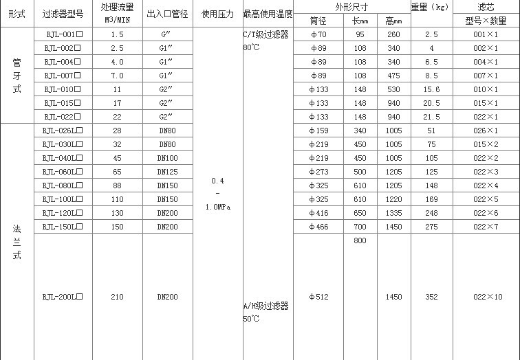 RJL油水分离器具有良好的技术性能和广泛的选用性,能对压缩空气中的污染物(油、尘、水)进行有效的过滤,经处理后的压缩空气可达到不含液态的油、水和微米级固体粒子。