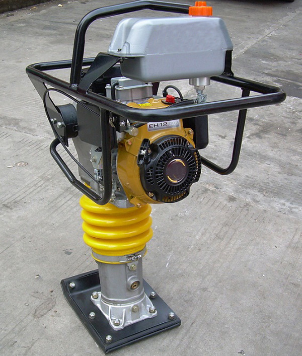 汽油冲击夯是一种冲击和冲击振动作用分层夯实回填土的压实机械。汽油冲击夯又称火力夯用于对沥青砾石、混凝土和粘土的夯实平整,特别适用于建筑、地面、庭院、路基、桥桩、沟槽、野外、狭窄场地等环境的施工,克服了电动冲击夯寻找电源拉线和没有电源不能工作的麻烦,尤其是克服了电动冲击夯带电作业对人身的不安全因素,能胜任大中型机械无法完成的施工任务。