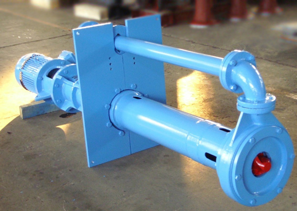 立式渣浆泵为单级,单吸悬臂式结构,用轴承座,支承座,联接管连接泵的水力部件,液体由出液管部件排出,泵的叶轮为半开式叶轮,在叶轮叶片进口延伸处设有搅拌叶片,该泵主要特点是在液下部位的泵轴,有足够的刚度,叶轮,泵壳之间不设轴承,不采用轴封,可以输送含有较大浓度固定颗粒的介质。泵插入液下的长度在800-2000之间,如果需要可以配带吸入管。轴封采用较大泵插入液体中运行,不设轴封,传动由立式电动机安装在电机支承和支承座上,用联轴器与泵相连。泵通过弹性联轴器与电动机连接,从原动机方向看泵为顺时针方向旋转。