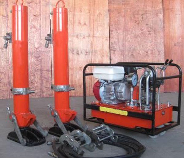 基本配置 一套起道设备配备:内燃液压泵站7台,高压软胶管28根,单缸液压起道机14台,横移平车14台,转向式纵移车7台。