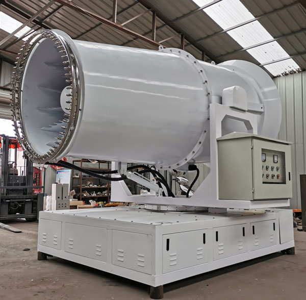 可选择固定水源,安装在混凝土浇筑、钢架结构搭建的平台上,依靠喷雾机射程、旋转角度喷雾降尘。