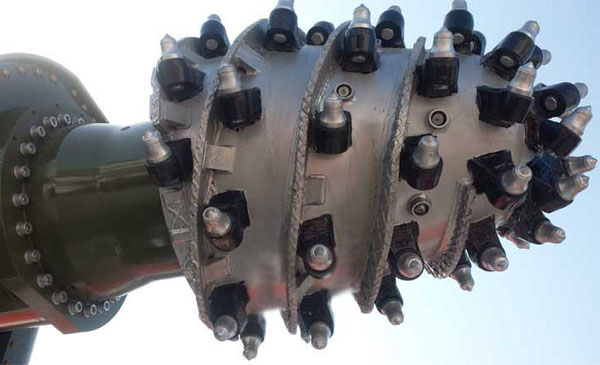(2)滚筒的截割速度(截齿刀尖的圆周切向速度)一般为4m/s-5m/s,因而采用不同直径的滚筒时,其转速应相应地改变,故在截割部减速箱中一般都有一对可更换的快速齿轮。通过改变齿轮的齿数,可以改变滚筒的转速。