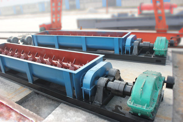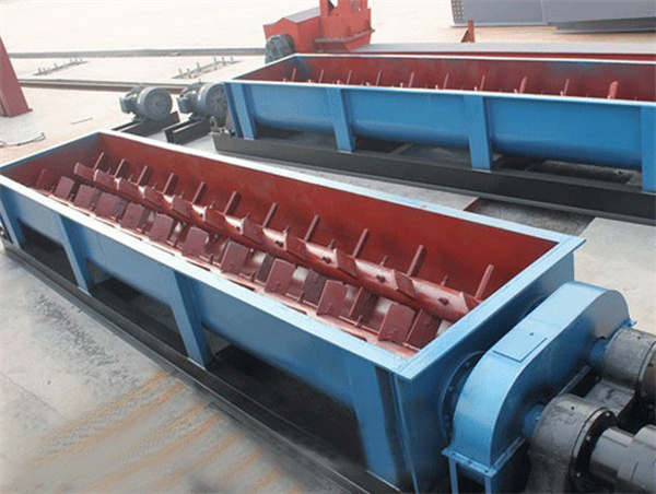双轴搅拌机利用两根呈对称状的螺旋轴的同步旋转,在输送干灰等粉状物料的同时加水搅拌,均匀加湿干灰粉状物料,达到使加湿物料不冒干灰又不会渗出水滴的目的,从而便于加湿灰装车运输或输入其它输送设备。