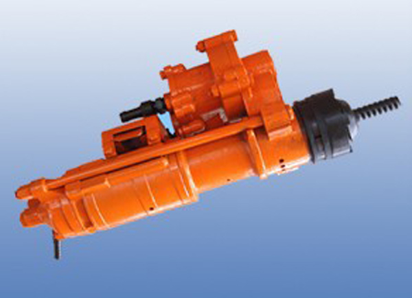 YGZ100型导轨钻机采用了冲击与转钎各自独立的结构冲击能与钎杆转速可根据矿岩条件分别调节。冲击部分采用无阀配气,能较好的利用压缩空气的膨胀作功。转钎部分采用无阀配气,能较好的利用压缩空气的膨胀作功。转钎部分采用齿轮气马达驱动,经两级正齿轮减速带动钎杆回转。齿轮式气马达布置在凿岩机的上部,以缩短凿岩机的总长度。因此更适用于在井下狭窄的采矿场作业。