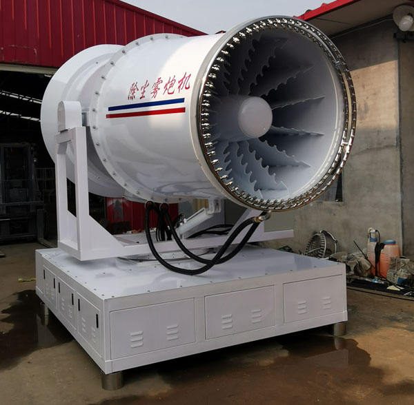 工作效率高、射程远、喷雾速度快、覆盖范围广、可以实现精量喷雾;对容易引起尘埃的堆场喷水除尘时,喷出的雾粒细小、与飘起的尘埃接触时,形成一种潮湿雾状体,能快速将尘埃抑制降沉;