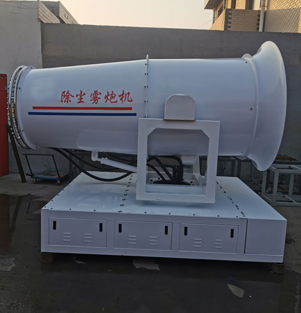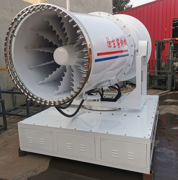工作效率高、喷雾速度快、射程远、覆盖范围广、可以实现精量喷雾;喷雾速度快;对容易引起尘埃的堆场喷水除尘时,喷出的雾粒细小、与飘起的尘埃接触时,形成一种潮湿雾状体,能快速将尘埃抑制降沉;配套动力灵活,既可用三相380V的市电,也可配套柴油发电机组供电;也可配套柴油发电机组供电安装在运输车辆上;可固定安装在混凝土建筑的平台上。