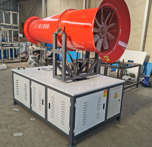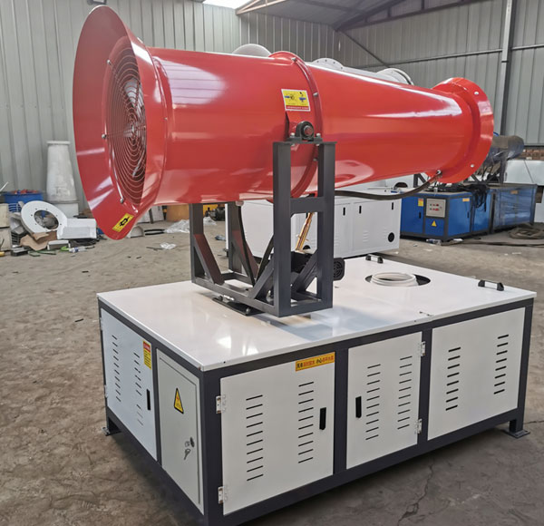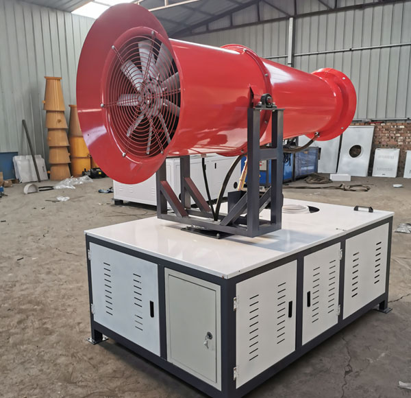 工作效率高、射程远、覆盖范围广、喷雾速度快、可以实现精量喷雾;对容易引起尘埃的堆场喷水除尘时、喷出的雾粒细小、与飘起的尘埃接触时,形成一种潮湿雾状体,能快速将尘埃抑制降沉;