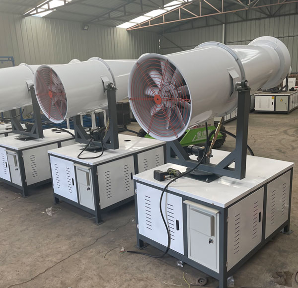对容易引起尘埃的堆场喷水除尘时,喷出的雾粒细小、与飘起的尘埃接触时,形成一种潮湿雾状体,能快速将尘埃抑制降沉;