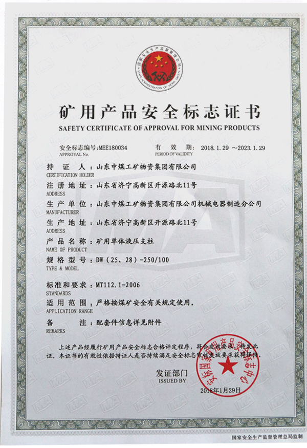 单体液压支柱由油缸、活柱、阀等零部件组成,以专用油或高含水液压液(含乳化液)等为工作液,供矿山支护用的单根支柱。属于恒阻式支柱,具有不变的额定工作阻力,它和金属铰接顶梁配合使用,主要使用在煤矿回采工总面顶板支护、煤矿综采工作面端头支护和回采工总面巷道的前支护临时支护,可用于煤层倾角在35°以下的任何采煤工作面,支柱支护密度根据地质状况和采煤方式而定。由于煤层自身的赋存条件(如近水平煤层、斜煤层、急斜煤层、直倒立转煤层、“鸡窝”煤层等)和煤层赋存地质条件的复杂性(如在一块煤田中,有大落差的断层,而较小的断层更是层出不穷),在众多的煤矿井下支护产品中,单体液压支柱与铰接顶梁配合使用,具有投资少、受地质条件限制少、使用和维护简单方便且操作灵活等特点,是我国和东南亚等国家煤矿工作面的支护的主导设备之一,与综采液压支架等其他多种支护形式产品将长期并存发展。
