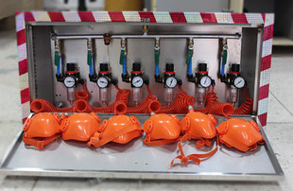 我公司出售的压水也是6个呼吸口,箱体和压风大小相同。可以和压风自救装置配套使用。