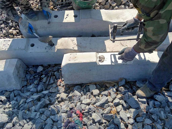 道钉锚固剂为无机混合料,具有快硬、高强、微膨胀、冷操作施工和对环境无污染等特点。省去了硫磺锚固道钉时需要熬制加热工序,避免混凝土轨枕、桥枕因局部受热可能产生裂缝和降低道钉使用寿命。允许在-10℃以上气温环境下施工,经200万次疲劳试验效果良好。