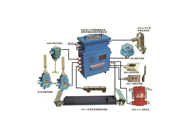 GVD300撕裂传感器、DF20矿用防爆电磁阀、RFMH超温自动洒水装置(物理式或机械式)等保护元件。