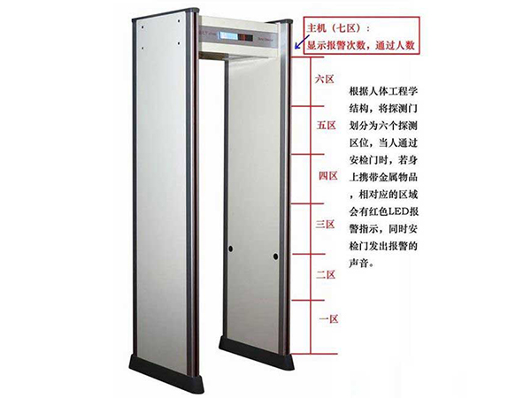 拥有多种选择的声光报警方式,便于识别。声光报警,可通过面板区域上超亮LED灯准确判断金属物品位置;门体二侧安装LED门柱灯,每排灯有240个灯泡组成,很直观地看到报警区位,帮助检查人员迅速找到违禁品位置。报警指示:1-25S报警时间、1000级灵敏度可调,门柱二侧均能通过LED立柱灯直接显示报警区位,准确显示人体相应高度藏匿的违禁物品;