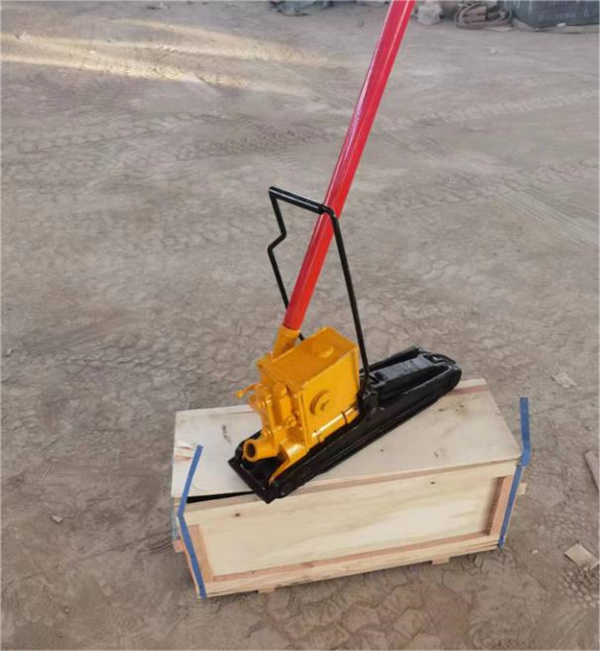 4.起道作业时,将底座插入轨底,使起道滚轮顶紧轨底里口边缘。当活塞伸长时,利用滚轮的垂直位移抬高钢轨,进行起道。