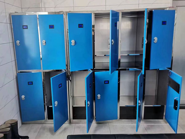 每组存衣柜面板门上安装有可靠质量的电磁锁;每个存衣柜可以机械应急开柜。