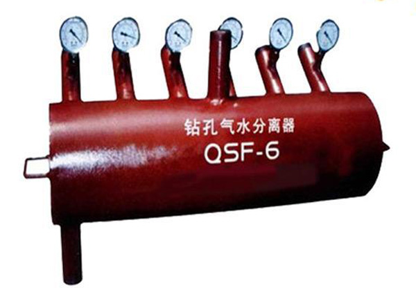 瓦斯抽放过程中会产生大量的水质,往往会影响抽放工作的正常进行。气水分离器就是把几个抽放孔集中在该装置中,有效地把气水分离开,QSF-6钻孔气水分离器再通过放水器进行放水,而且在该装置中放置了负压表,给及时地了解每个孔的负压状态,减少抽放工作中的故障率,增大抽放效率,煤矿的安全生产。