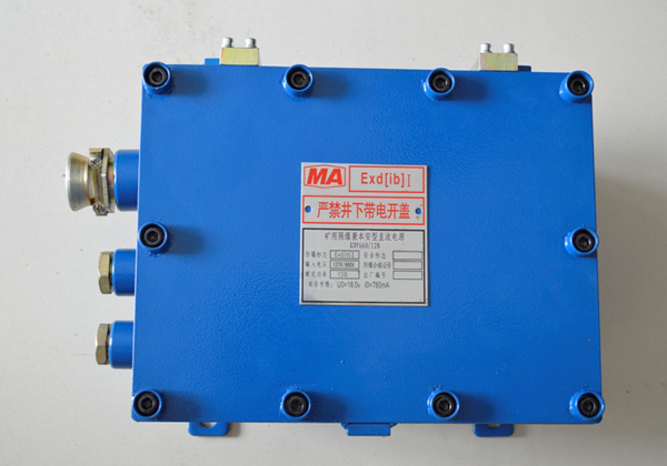本电源箱适用于有瓦斯、煤尘危险的煤矿井下、露天煤矿、选煤厂等工作场所,用于向重要的现场本质安全型用电设备提供本安电源以及向通信分站等要求不间断供电的隔爆型设备提供不间断的直流稳压电源。保护功能 本产品具有输出过流、过压保护功能和蓄电池过放及反接保护功能,故障解除后能自动恢复工作。蓄电池有防护性绝缘盖板,并具有联锁装置,开盖后不对外供电。