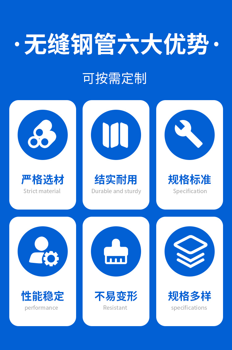 无缝钢管是一种具有中空截面、周边没有接缝的圆形,方形,矩形钢材。无缝钢管是用钢锭或实心管坯经穿孔制成毛管,然后经热轧、冷轧或冷拨制成。无缝钢管具有中空截面,大量用作输送流体的管道,钢管与圆钢等实心钢材相比,在抗弯抗扭强度相同时,重量较轻,是一种经济截面钢材,广泛用于制造结构件和机械零件,如石油钻杆、汽车传动轴、自行车架以及建筑施工中用的钢脚手架等。