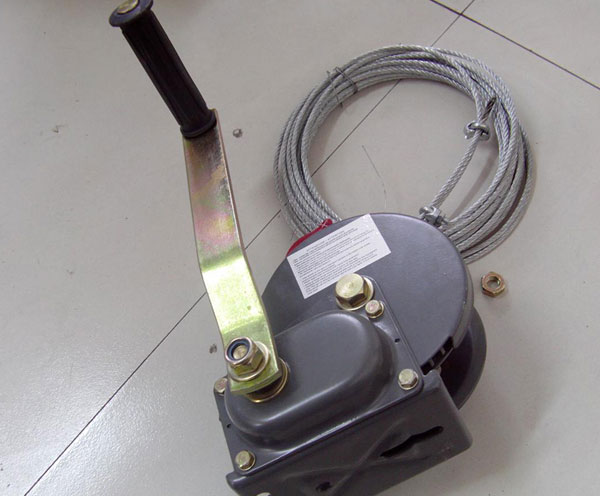手摇卷扬机(又叫绞车)是由人力或机械动力驱动卷筒、卷绕绳索来完成牵引工作的装置。可以垂直提升、水平或倾斜拽引重物。卷扬机分为手动卷扬机和电动卷扬机两种。现在以电动卷扬机为主。电动卷扬机由电动机、联轴节、制动器、齿轮箱和卷筒组成,共同安装在机架上。对于起升高度和装卸量大工作频繁的情况,调速性能好,能令空钩快速下降。对安装就位或敏感的物料,能用较小速度。