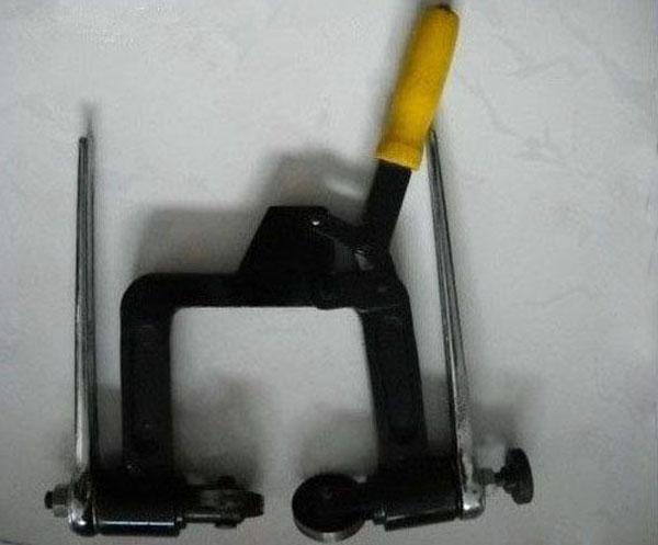 双边倒角器是用于对铁路钢轨轨腰上的孔进行倒角。双边倒角器其结构:它有一个门形框架,由左支架和右支架通过一套四连杆机构铰链而成,锁紧杆上端装有手柄,左支架下端的轴套中装左轴,左轴右端装有圆盘状刀片,左轴左端装有棘轮扳手,右支架下端的轴套中装有右轴,右轴上套装一个压紧弹簧,右轴左端装有圆盘刀片,右轴右端装有棘轮扳手。双边倒角器结构简单,使用方便,工作效率高,其刀片呈圆盘状,整个圆周上的刀刃锋利耐磨,使用寿命长等优点。