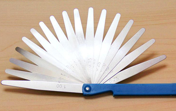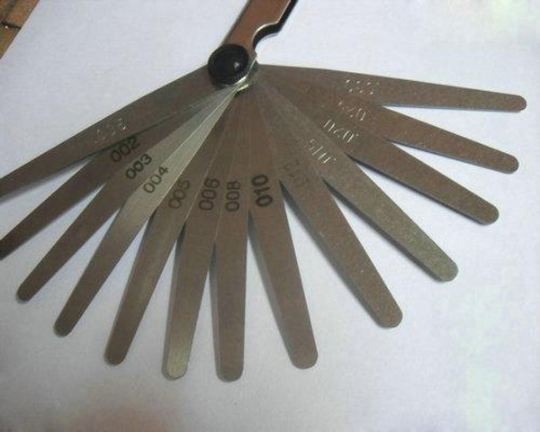 (2)将塞尺插入被测间隙中,来回拉动塞尺,感到稍有阻力,说明该间隙值接近塞尺上所标出的数值;如果拉动时阻力过大或过小,则说明该间隙值小于或大于塞尺上所标出的数值。