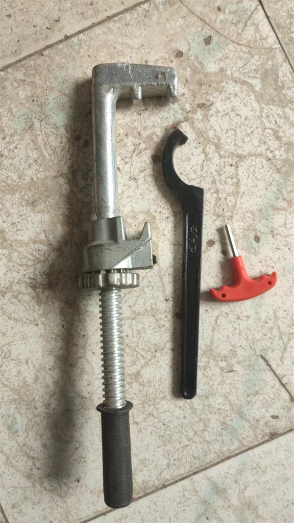 道岔钩锁器的作用:主要用于各种道岔及可动心道岔的锁闭 道岔钩锁器由主钩、副钩、粗调定位挡铁组成,粗调定位挡铁的外侧增加了一个微调锁定螺母和一个钩扳手;主钩的钩头有两个大小不同的双齿。钩尾有一个纵向滑槽和一个横向挡位槽,粗调定位挡铁的外侧有与微调锁定螺母相配合的螺纹。该钩锁器拆装方便,强度高,夹紧力大,适用于各种类型的道岔锁定。