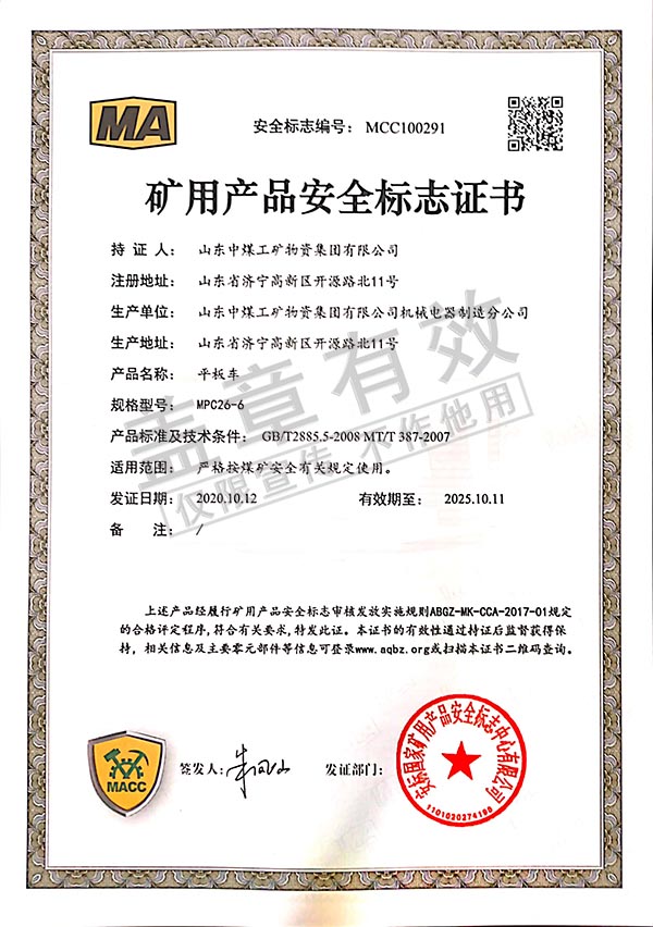 产品的型号由英文大写字母和数字组成,主要描述的数据是煤矿用车的车型、车箱容积和轨距,各字母和数字的顺序为固定排列,