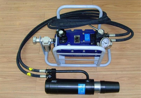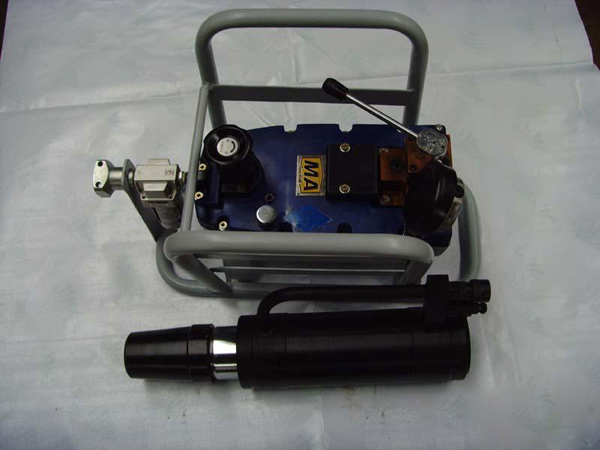 锚索张拉机具由预应力张拉千斤顶、带单向阀的快速接头、高压油管、手动油泵(气动油泵,电动油泵)等组成,主要用于煤矿巷道锚索支护时张拉锚索并安装锚具,也可用于桥梁、隧道、高速公路等张拉预应力钢绞线。