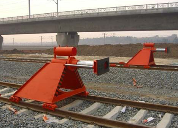液压挡车器是一种安装在轨道尽头线上的防撞挡车安全防护设备,适用于有轨交通车辆的安全防护。挡车器由主体架、阻尼器、缓冲头和液压缓冲装置四大部分组成。液压挡车器由液压缓冲和滑动摩擦来吸收溜逸车辆的动能。在阻尼器内装有多组弹簧增力装置,既增加了制动力,又缩短了线路占用长度,便于安装和复位。液压挡车器采用压力阀与阻尼小孔相结合的方法,减少了在高速冲击下液压系统压力的峰值,提高了缓冲系能,有利于保护车辆。