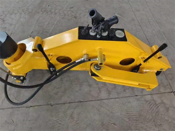 往复摆动手扳把,将作用力施加在待调直钢轨轨顶面,通过支架另一侧顶头及中间部位的吊钩,对钢轨进行校直,使柱塞泵工作(吸、压油),将高压油压入工作油缸内,活塞杆伸出,这样根据杠杆平衡原理,便可实现钢轨低接头进行校直的。