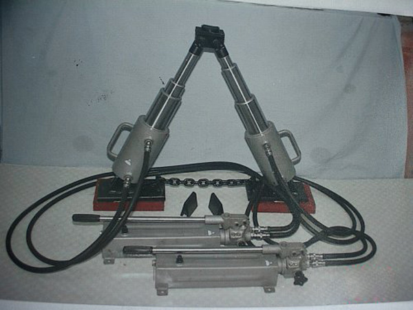 A-150型(吊复式)复轨器吊复点为车钩(或者勾框),每只液压缸为一级液压缸横移量为500mm、工作点为400mm、升程为1100mm。A-150型(吊复式)复轨器吊复车钩(或勾框)适用于重量≤280吨机车、车辆,配接机动泵,实用性强,操作稳定。
