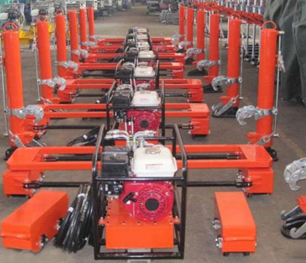基本配置 一套起道设备配备:内燃液压泵站7台,高压软胶管28根,单缸液压起道机14台,横移平车14台,转向式纵移车7台。