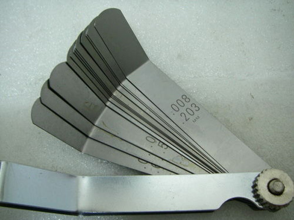(2)将塞尺插入被测间隙中,来回拉动塞尺,感到稍有阻力,说明该间隙值接近塞尺上所标出的数值;如果拉动时阻力过大或过小,则说明该间隙值小于或大于塞尺上所标出的数值。(3)进行间隙的测量和调整时,先选择符合间隙规定的塞尺插入被测间隙中,然后一边调整,一边拉动塞尺,直到感觉稍有阻力时拧紧锁紧螺母,此时塞尺所标出的数值即为被测间隙值。