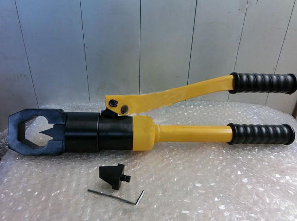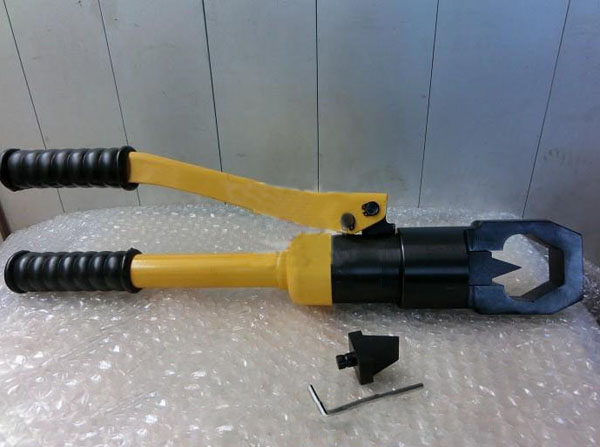 3、压动手动油泵,使劈刀顶出推进至螺母,当劈刀顶进螺母二分之一时,须小心的压动手泵,以免用力过猛,劈刀快速将螺母劈开损伤螺栓丝扣。