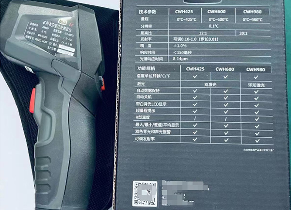 CWH425红外测温仪具有体积小、重量轻、坚固、耐用、使用简便等优点。使用时,只需对准目标,扣动板机,不到一秒钟即可读出物体表面温度。
