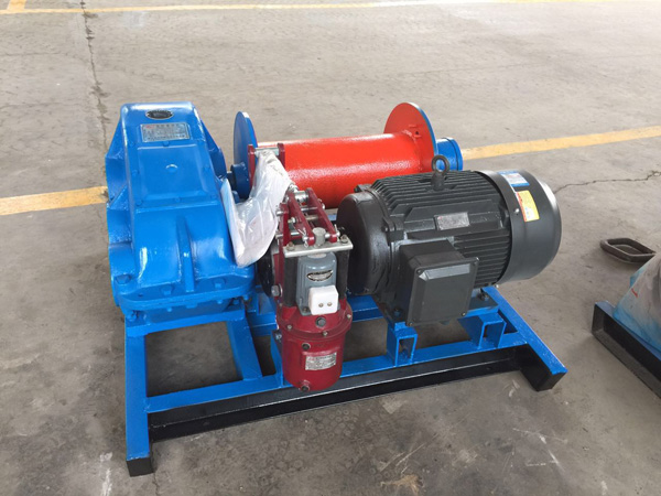 1吨快速卷扬机主要由底座、电动机、弹性联轴器、电磁铁制动器、三级封闭式齿轮减速箱以及卷筒、托脚组成。